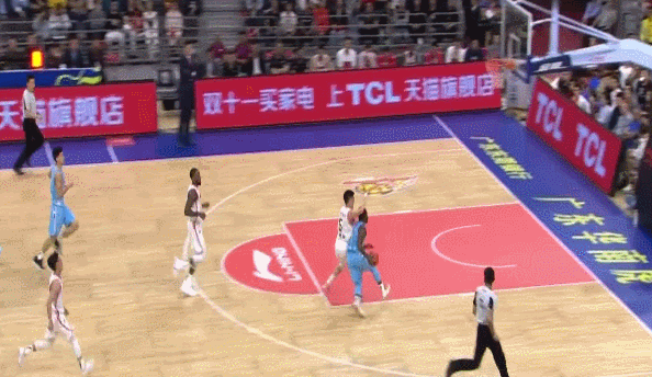 首节后半段,可兰白克接西热力江传球,连续命中外线三分。