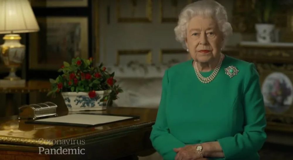 英国女王伊丽莎白二世(Queen Elizabeth II)发表特别电视讲话,向新冠肺炎疫情在英国发生以来参与抗疫的每个人表达感谢,呼吁英国民众团结一致对抗疫情。图源:网络截图