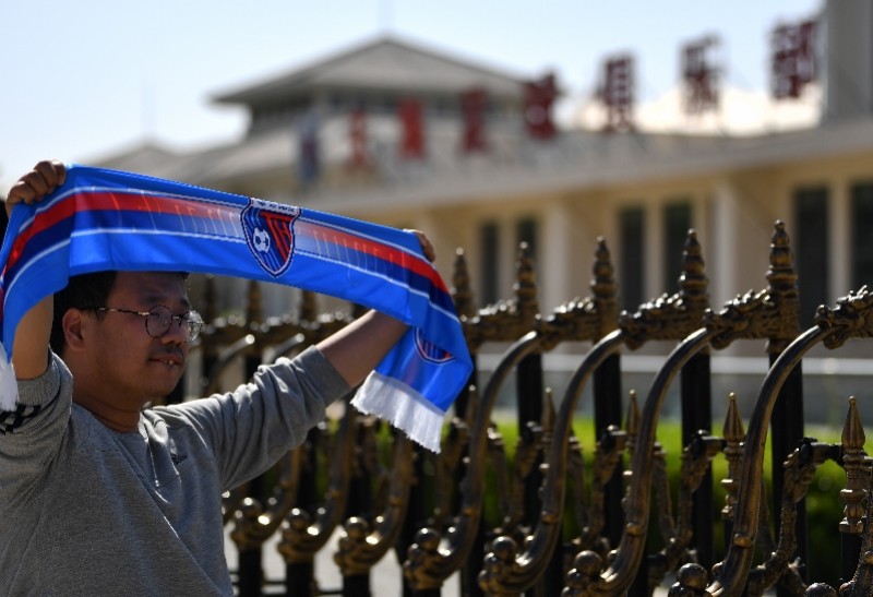 5月12日,天津天海正式宣布解散,球迷自发来到基地为球员送行。新华社图片